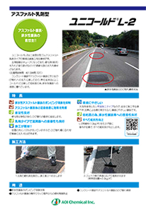 ●排水性アスファルト舗装のポンピング現象を抑制 ●アスファルト舗装体の延命処置に効果を発揮 ●追従性良好 硬化物は弾性があり、目地やひび割れの動きに追従します。 ●乳剤タイプで湿潤面への接着性も良好 ●施工が簡単!! 容器の先にノズルが付いていますので、目地幅やひび割れ幅に合わせて簡単に注入・吐出できます。 ●環境にやさしい 火気を使用しない常温施工タイプなので、安全に施工する事ができ、加熱による煙の発生もなく、環境にやさしい製品です。 ●低粘度の為、排水性舗装等への浸透性良好 ●すべり抵抗性向上 L- 2用骨材(1. 0kg/㎡)を仕上げ面に散布する事で、すべり抵抗性が向上します。